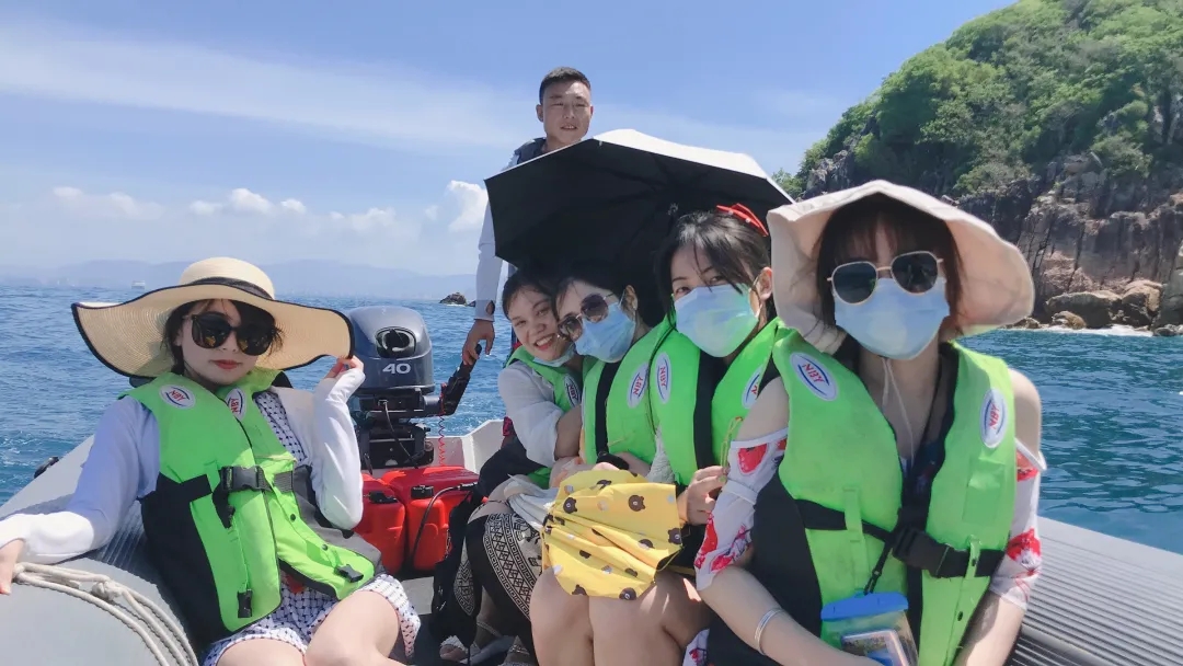 团队集体帆船出海,扬帆沿着三亚湾溯流而上。大家通过团队合作进行“升帆”“压舷”“掌舵”等操作,体验玩海乐趣,还感受了一下帆船自驾的刺激,征服大海,体验水手的感觉。